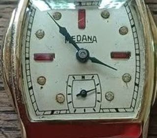 mEDANA SUISSE DIAMANTS RUBIS Année +- 1940 a 1950 Suisse mouvement mécanique à remontage manuel Incrustations rubis baguette et diamants à prendre sur place payement exclusiv