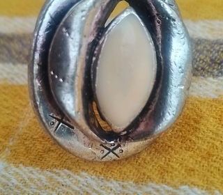 Superbe bague fantaisie... avec pierre émaillée * Taille... Ajustable (Voir Photo n° 2) * Matière : Métal vieilli argenté... avec p'tits motifs (Voir Photo n° 1) * Dimension :