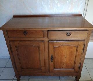 vendons bahut en bois brut vernis, 2 tiroirs 2 portes Longueur 124 cm largeur 58 cm hauteur 109 cm hauteur des pieds 15,5 cm maison à vider (autres articles) Transact