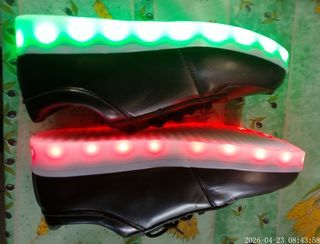 Vend basket noir avec semelles lumineuse de différentes couleurs neuve taille 44 (longueur de pied 29cm) prix 23 € se recharge avec un câble USB de portable Tel Si absant laisser