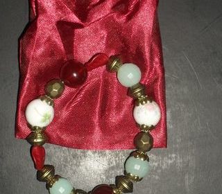 Bracelet fantaisie + Sac rouge. NEUF. Diamètre 7,5cm. Elastique. D'autres lots de bracelets, de boucles d'oreilles, de colliers, de pendentifs, de médailles sur ce site, n'hés