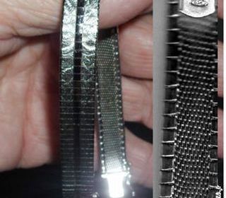 Bracelet Argent rétro / année '70 souple, poinçon 835, Maille tissé à l'intérieur, extérieur: petites lamelles Il est muni d'un fermoir à clapet plus un 8 de sécurité L