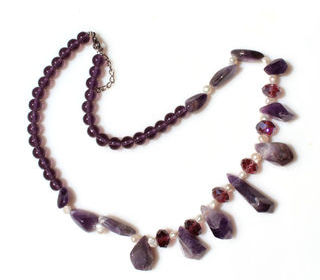 Collier composé de perles d'améthyste, de perles de culture blanches authentiques, de cristaux et cabochons d'améthyste Fermoir à ressort et de perles swarovski violettes Pierres