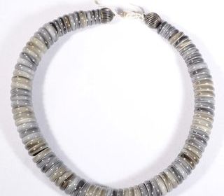 Splendide collier vintage de créateur composé de gros émaux gris creux pour s'emboîter (diamètre 1,5cm). Fermoir à vis Collier unique made in France Longueur du collier avec fer
