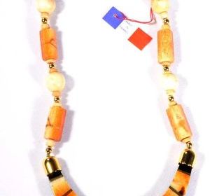 Splendide collier de luxe vintage de créateur composé de cylindres de corail, de perles de corail blanc, d'une plaque de corail sur matière noire non identifiée, de petites perles