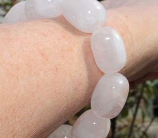 Bracelet stretch de qualité composé de 10 nuggets 2 cm sur 1,5 cm de quartz rose , pierre naturelle Diamètre 6 cm, longueur 20 cm extensible Pour homme ou femme Envoi en let