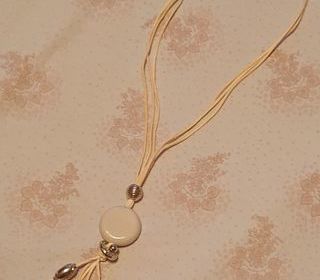Joli collier pour l'été, cordon en coton et breloques, couleur écru et argent.