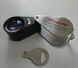 1 Loupe de diamantaire avec éclairage LED +UV Grossissement: 20 x Lentille: (Ø) 21 mm 1 Loupe de diamantaire avec éclairage LED +UV Grossissement: 10 x Lentille: (Ø) 21 mm