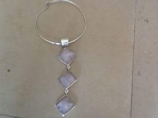 Vends collier argent cercle rigide et pendentif argent et quartz rose clair