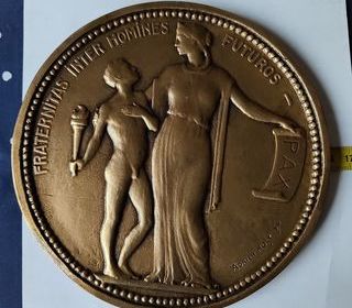 Médaille en bronze massif diamètre 15,5cm , épaisseur 8mm, poids : 595 grammes Je suppose qu'elle date autour des année 1950. Elles est signée : Adrien Holy