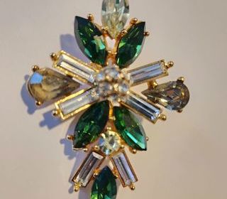 Vends BO Boucles D'Oreilles Clip cabochon rectangle orange + pendant croix dorée DG cabochon bleu et barette rose + perle et strass. Siglées Christian LACROIX Pas de remise en