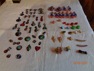 JOLI LOT DE BIJOUX ET ÉMAUX ANNÉES 60/70 Comprenant des boucles d'oreilles à clips (verre et bakélite) Des bijoux de cheveux Des bijoux émaux sur cuivre Un ensemble d'émaux su