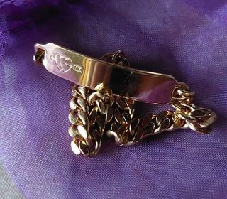 Gourmette en acier inoxydable gravé (2 c?urs percés). Longueur 18 cm. Produit neuf. Pas d'envoi. remise en main propre