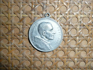 Belle médaille en aluminium ROMA Chiesa Di.S.Pietro Benedictvs.XV Pont. Max Diam: 4 cm / avec anneau 4,5 cm / ép:4mm /poids: 8 gr/ Matière: Alu Elle vous parviendra en lettre