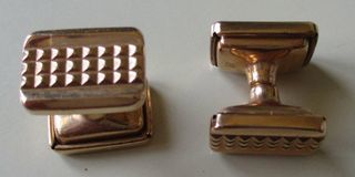 Boutons manchettes vintage années 65-70. La face des boutons de manchettes est rectangulaire. Le centre a des reliefs sur toute la longueur. Dimensions des faces : 14 x x10 mm