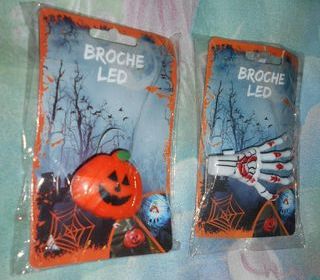 - broche led (plastique) en forme de main : pince fer pour l'accrocher à un vêtement ou chapeau ou autres... - broche led plastique en forme de citrouille... (idem) Les 2 broches