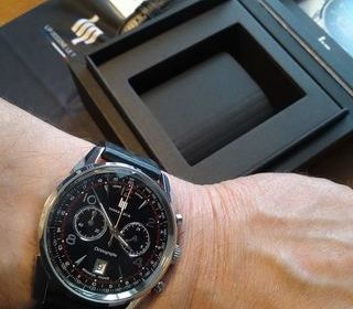 Montre chrono Lip noire de 40 mm, date, quartz, vendue avec 2 bracelets dont 1 offert, extrêmement peu servi. Prix de la montre neuve 300€, le second bracelet était un cadeau, donc