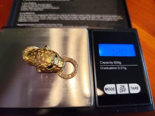 Pendentifs tête de Panthere or massif 18 carats avec 23 diamants ronds blanc 3 mm chacun poids en carats 1,93 carats de diamants et Saphirs ovales bleu foncé ( 5 x3 mm. Poids 12.0