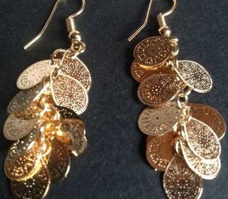 BOUCLES OREILLES DORÉ AMANDE "GRAPPE" ETAT NEUF BOUCLES D'OREILLES DORÉE AVEC MOTIF EN FORME D'AMANDE EN "GRAPPE" DE 4 cm. POUR LE RÈGLEMENT, JE FONCTIONNE COMME SUIT: PAI
