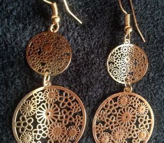 BOUCLES OREILLES DORÉ DOUBLÉ CERCLE FLEUR Envoi Possible BELLES BOUCLES D'OREILLES DORÉES DOUBLÉES DE CERCLES REMPLIS de FLEURS DE DIFFÉRENTES TAILLES. DIAMÈTRE PETIT CERCLE