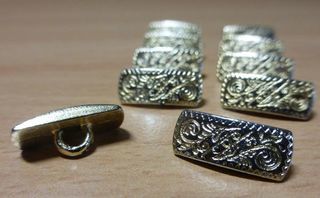 10 BOUTONS métal DORE RECTANGULAIRE à coudre sur chemisier..... - motif ton sur ton - 1.5X0.5 cm NEUFS