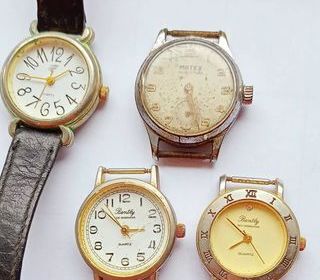 Lot de 4 anciennes montres des années 50/60 (ou encore plus âgées) ? fonctionnement à vérifier N'ont pu être testées, je ne sais pas si elles fonctionnent Diamètre entre 2.7