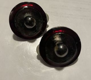 BO Clip ronde base noire + Emaillé rouge translucide Siglée ANTIGONA Dim 2,5 x 2,5 cm env vintage année 90 Parfait état Je vends aussi des d'autres bijoux de la même marque +