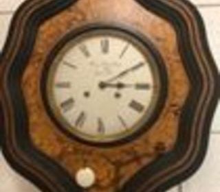 Pendule murale en bois peint. Très beau cadran, complète avec sa clef et son mini balancier. Hauteur 59 cm Largeur 48 Profondeur 14 cm Diamètre cadran pendule 24,5 cm