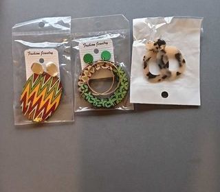 3 pièces, boucles d'oreilles femme, disponible, à venir récupérer sur place paiement en espèce.