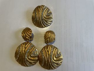 Magnifique parure avec Broche et BO clip assorties Coquillage Strass Siglées LANVIN Broche strass 3,5 x 3,5 cm env BO clip avec pendant strass 6 x 3,5 cm env Superbe état, pe