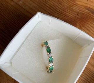 ETAT NEUF - OR jaune 750/000ème rhodié, 5 émeraudes ovales 4x3 = 0,9 ct, 4 diamants HSI, brillants 15/10 = 0,66 ct. ~ 2,84 g. ~ Facture 2024, écrin. Transaction/envoi via le site,