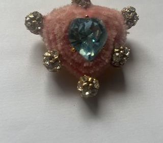 Très rare Magnifique petite broche sur support métal doré en C?ur rose (doux, feutrine) + 6 petites boules strass Crystal et en applique serti c?ur strass bleu ciel Siglée Ch