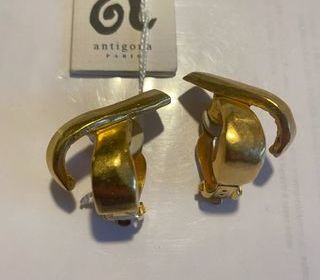 BO boucle d'oreille Clip dorée croisillon siglée ANTIGONA Dim 3 x 2 cm env vintage année 90 Parfait état Je vends aussi des d'autres bijoux de la même marque + C.LACROIX, LAN