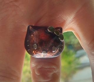 Superbe bague boule fantaisie... " Tête de Chat " * Taille... Ajustable (Voir Photo n° 3) * Matière - Au dessus : Emaillée coloris "Marron"... Avec p'tit N?ud "Vert" -