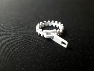 Bague pour femme Forme fermeture éclair Matière métal Couleur blanc Taille 50 Dimensions 0,5cm de large En très bon état