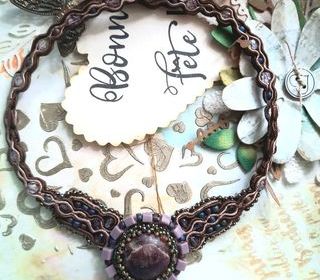 Collier avec une pierre rhodonite. Broderie haute couture .Un cadeau idéale.