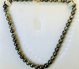 Véritable collier de perles de culture de Tahiti. "État neuf ; jamais porté. Enfilage professionnel avec file polyamide et n?uds qui séparent chaque perle pour éviter l'usure e