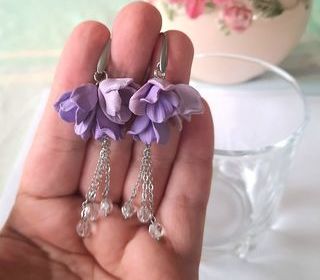 Boucles d'oreilles avec les roses bleues,longueur 6 cm.Creation unique.