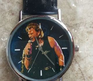 Montre neuve Johnny Hallyday 3,5 cm diamètre bracelet noir Pas d'envoi