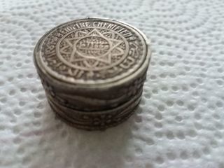 Boîte faite avec une pièce en argent de 10 francs Empire Cherifien 1366, diamètre 2,8 cm, hauteur 2cm. AUCUN ENVOI, à venir chercher sur Prefailles