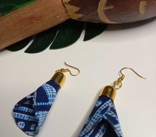 Boucle d'oreille forme cône, customisée en tissu pagne, tissu Ndop Ouest Cameroun. #tissu pagne africain #Ndop #Boucle d'oreille
