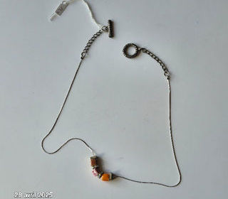Collier discret et fin avec 3 céramiques et des strass venant d'une artiste de Venise Le collier doit être en argent ..., il est très fin, la fermeture