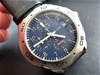 DIV0310 Ancienne Montre chronographe 1995 Neuve de stock ancien Marque: TECTONIC Mouvement quartz à pile Calibre: MIYOTA OS10 haute précision Boitier façon titane à fond clip
