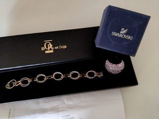 Lot de Bijoux : 1 BRACELET en Argent 9,800 gr (Neuf jamais porté) certificat d'authenticité Marque "DORS ET DÉJÀ" Dimensions : 21 cm (boîte d'origine) et 1 BAGUE SWAROVSKI nuance
