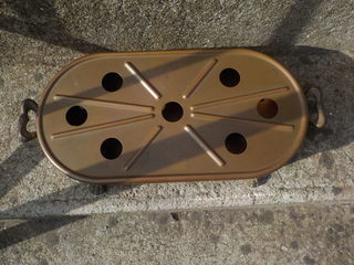 Chauffe-plat des années 70, en cuivre de Faucogney, manufacture franc-comtoise aujourd'hui disparue. Le corps est en cuivre et les poignées ouvragées, ainsi que les pieds à pa