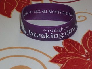 Bonjour, Je vous propose depuis ma collection "Twilight" : * Bracelet caoutchouc "Breaking down". Trés bont état, maison non fumeur. Pour plus d'info, mailez moi. Me