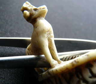 Fibule couleur Ivoire en Os ou matière Naturelle avec Animal-années 50 (Vintage) Cette Fibule nous vient des années 1950. Origine inconnue (retrouvée dans une boîte de souvenirs