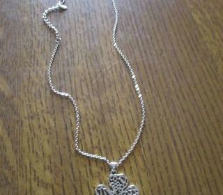 Collier avec pendentif en forme de cristal enveloppé avec pierre précieuse violette. Pas d'envoi, à retirer sur Dunkerque.