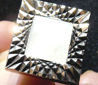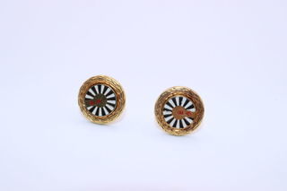 Boutons de Manchette (paire) très brillants en Métal Doré et Nacre - années 60 Forme classique mais particulièrement brillante, ce qui contraste avec le terne éclat neutre de