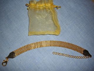 vends joli bracelet neuf, jamais porté, il est doré à l'or fin, belle brillance, assez large 7mms, mailles souples qui se pretent au mouvement du poignet ce qui évite les cassures